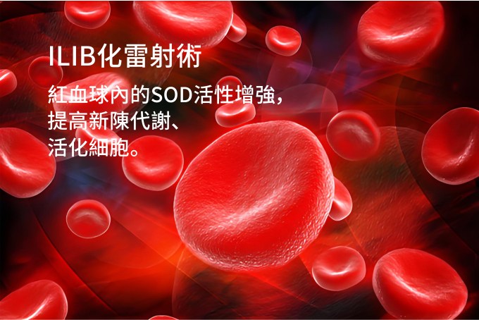 使紅血球內的SOD活性增強,提高新陳代謝、活化細胞。